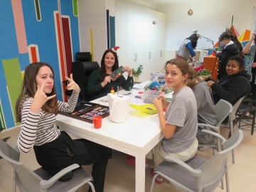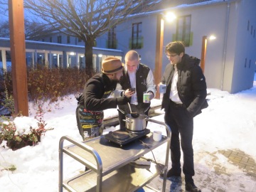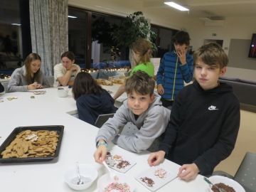 Již tradičně jsme zdobili Martinčiny perníčky. Jejich lahodná chuť zaručila, že nám nevadilo být upatlaní od polevy skoro od hlavy až k patě. A stejné nadšení nám přinesl Patrikův veleznámý punč. U Toma jsme věštili svou budoucnost oblíbenou českou tradicí – litím olova. S pomocí starších studentů jsme v dílně vyráběli keramické výtvory sobě pro radost nebo jako dárek někomu blízkému. Užili jsme si i netradiční zábavu – trefování se šipkami do papírového Santy (snad nám to promine). Při výrobě záložek nebo pletení náramků jsme popíjeli Alenčinu horkou čokoládu a přikusovali k ní výborný štrůdl a vánočku, jejichž vůně se dnes celé dopoledne linula kolejemi. Vrcholem adventního odpoledne byla recitace vánočně pojatých básniček z per našich vychovatelů i studentů.