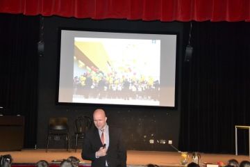 Toto Assembly bylo opět pod heslem "Pošli to dál" a my jsme vyslali dál našeho pana ředitele Jirku Luku. Připomněli jsme si, jak základní škola začínala, zavzpomínali na školní i mimoškolní akce a Jirku na cestu vybavili hned devíti velkými radami, stodvaceti srdci a notnou dávkou slz.