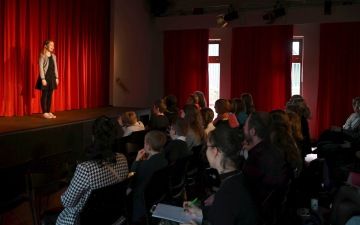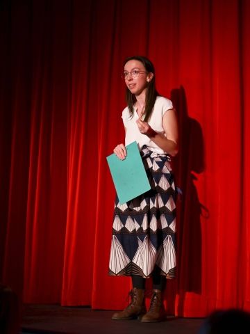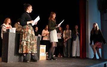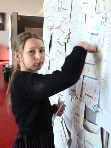 Účastníci se nenudili ani o přestávkách. Ve foyer divadla psali vzkazy do obálek ostatním recitátorům, užívali si sluníčka v areálu a navštívili naši knihovnu, kde bylo připraveno několik literárních úkolů. Ve čtenářském tipu nám recitátoři doporučovali své oblíbené knihy a Básnické střevo otvíralo prostor pro vlastní autorské básně. Nechybělo ani recitační nebe, peklo, ráj plné podnětných informací. Za splnění literárních úkolů získali vylosovaní šťastlivci knižní cenu.
