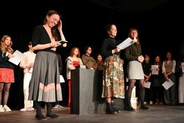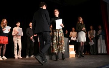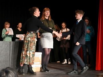 Jaká ocenění získali naši studenti? Ze základní školy získala zvláštní ocenění poroty za práci s veršem a inspirativní sdělení Ellyn Bendová a ocenění poroty získal také Jan Malíř za výstavbu vyprávění a práci s humorem. Velká gratulace míří Ester Rumlové a Valentině Šimlové k postupu do krajského kola přehlídky. Držíme jim palce. Z gymnázia získal ocenění poroty za energický projev Petr Podlešák a ocenění poroty za porozumění textu získala Adéla Janková. Skvělé recitační výkony také předvedli Kryštof Gavenda a Rozálie Michalová.