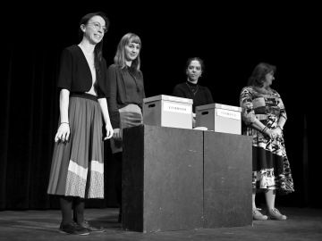 Zpětnou vazbu poskytovaly dva týmy zkušených recitátorek. Pro mladší kategorie v porotě zasedly studentky KVD DAMU Hana Vítková, Agáta Mašková a Zuzana Tekely. Pro starší kategorie studentky KVD DAMU Adéla Zmrzlíková, Ester Gracerová a jejich pedagožka, recitátorka, improvizátorka a zdravotní klaunka Jana Machalíková.