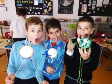V rámci výtvarné výchovy si vytvořili vlastního bacila. Všechny bacily jsou vystavené na naší nástěnce spolu s projekty na toto téma.