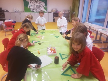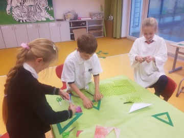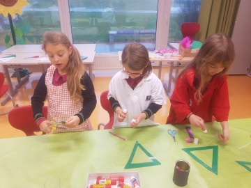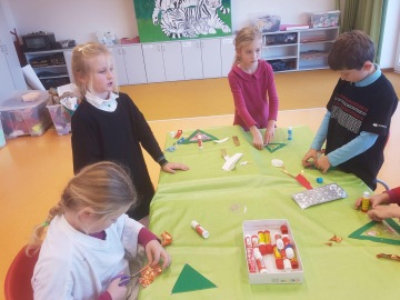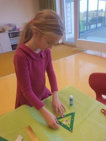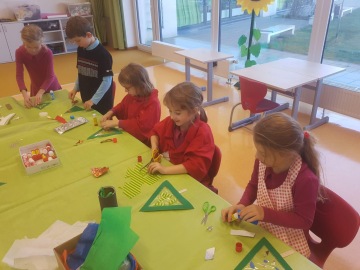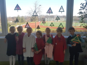 Vánoce jsou již za dveřmi a tak jsme se s dětmi během pátečního volitelného předmětu pustili do tvorby "vánočních stromečků" - dekorací na okna. Pracovali jsme s fóliemi a hedvábnými papíry, které jsme vlepovali do kartonového obrysu stromku. Pohráli jsme si tak s průhledností, překrýváním a vrstvením různých barevných ploch. Výsledný efekt pak nádherně vynikl po zavěšení na okna.