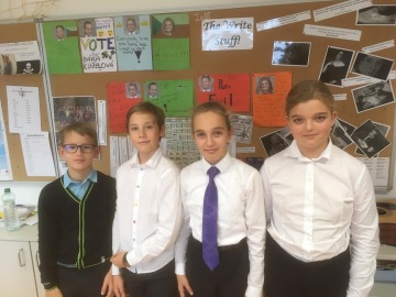 Class 5 is currently gripped with election fever as 4 candidates are ready to do battle to win votes and become president of class 5. Some of the issues up for discussion were more class trips, cleaner classrooms, sitting where you want, paper saving measures and celebrating Christmas more but the real issue during this election campaign is the ongoing ‘war’ between the boys and girls. The candidates, Bara, Viki T., Honza and Robert all insist they are the right person to bring harmony to the class room as they made their first speeches to the classes.