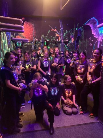 Týden poté, v den oslavy vítězství nad nacismem, se návštěva Laser Game přímo nabízela. Že studenty akce bavila, potvrdila slova děvčat ze sekundy: „Úroveň zábavy se dala poznat podle toho, že jsme všichni byli hodně zpocení. Doufáme, že budou další podobné a zábavné výlety a také nezapomenutelné zážitky!“ Po náročné střelbě následovala prohlídka zříceniny říčanského hradu, procházka okolo Mlýnského rybníka a zábavný minigolf, který bychom si přáli mít u nás v areálu pod divadlem. A pak už jen hurááá na zmrzlinu.