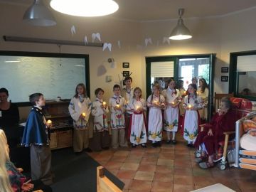 Ve středu jsme měli možnost naše vystoupení znovu zopakovat, tentokrát o kousek dál, v hospicu Dobrého pastýře v Čerčanech. Pro nás všechny to byly nezapomenutelné okamžiky. Lidé, kterým jsme na sklonku jejich života v nelehkých chvílích dokázali vykouzlit úsměv na tváři a zazpívat si písně, které znali ze svého dětství, nám vlili do našich srdcí skutečnost, že naše práce na nácviku vystoupení má obrovský smysl. Z půlhodinového vystoupení se rázem stalo hodinové a děti ještě na odchodu v bundách zpívaly na přání personálu a jedné pacientky (bývalé paní učitelky) koledy. Velký dík patří Petře Kobrové, která bravurně a pohotově reagovala na všechna přání klavírním doprovodem a tím ještě více umocnila personálu i nemocným seniorům krásný zážitek. Všichni jsme se shodli, že na toto místo se moc rádi s dalšími písničkami brzy vrátíme.