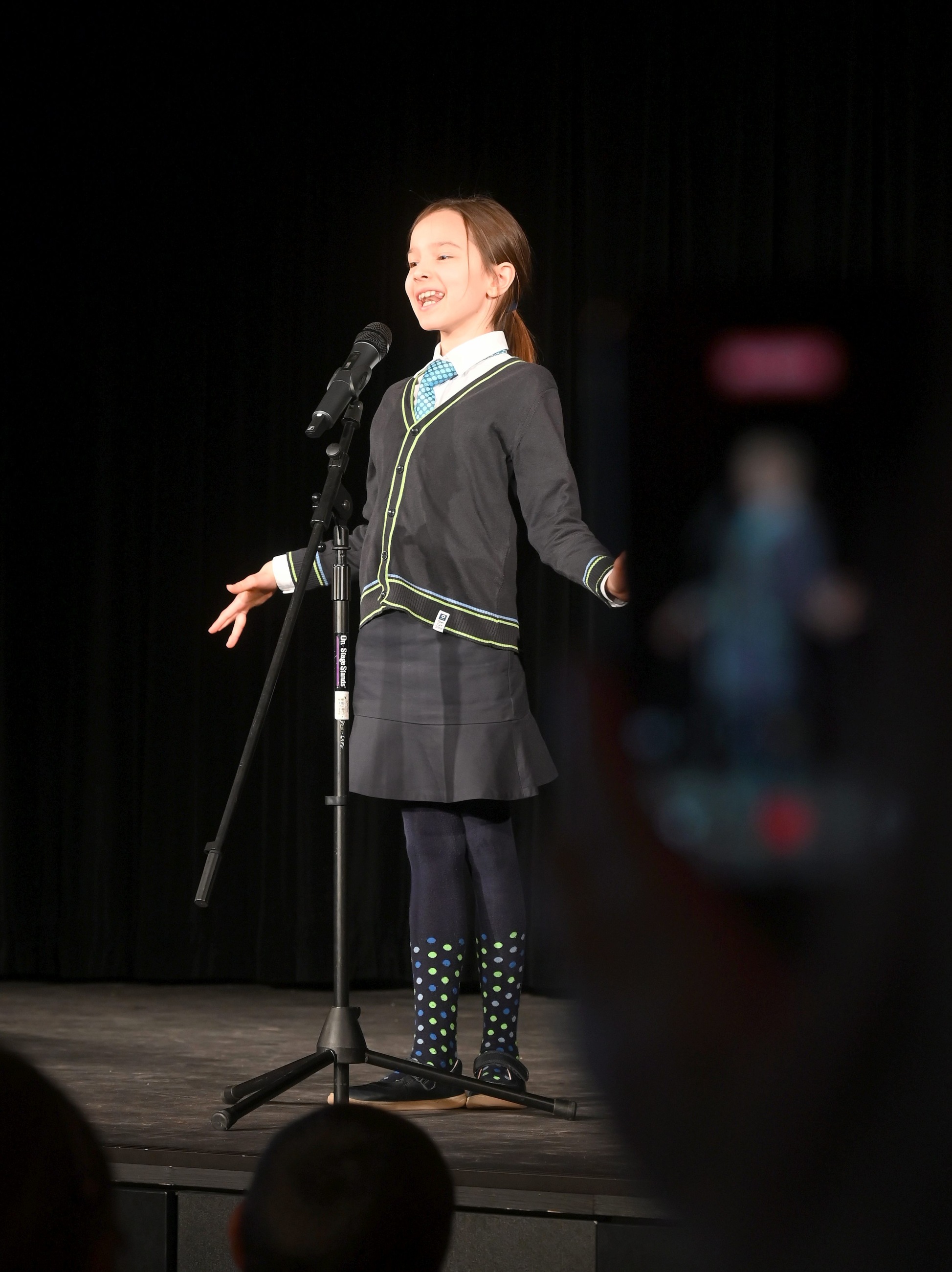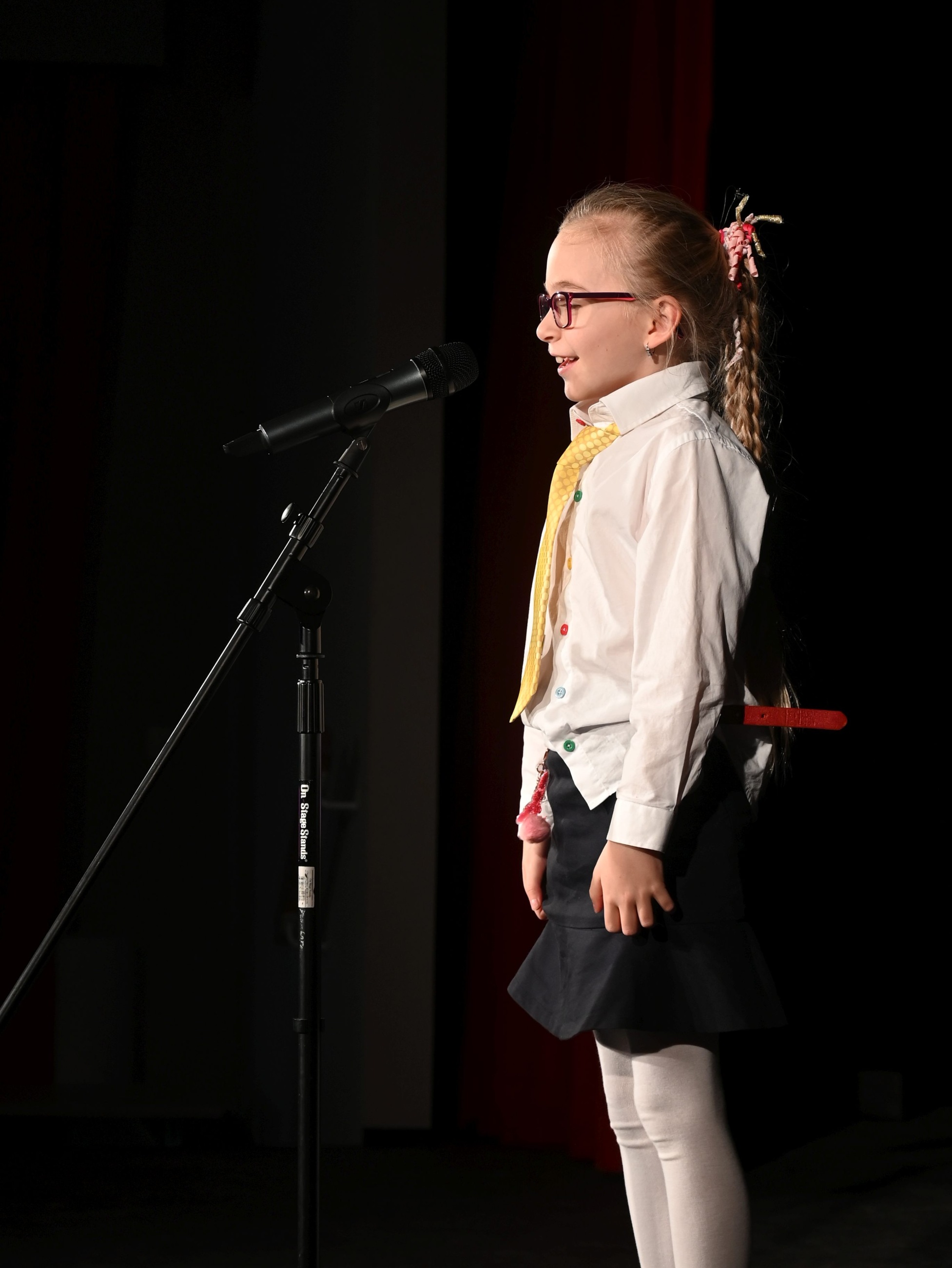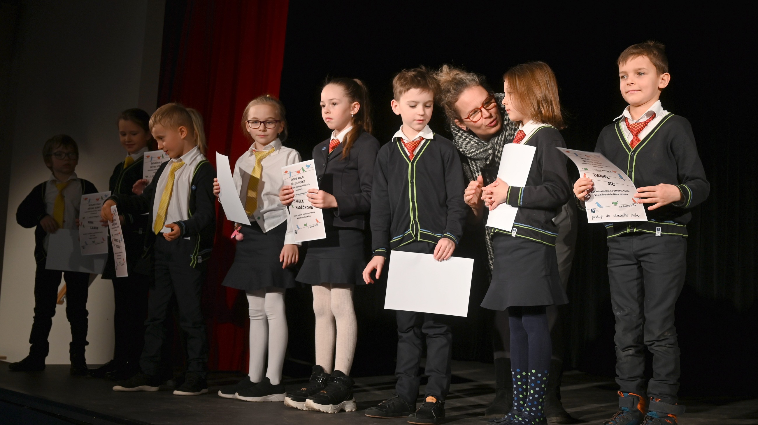 Zvláštní uznání si zaslouží také pět odvážných prvňáčků, kteří své básně přednesli vůbec poprvé – teprve ve středu před třídou a hned následující den i na jevišti. Publikum si vyslechlo pestrou škálu básní i krátkých próz, které recitátoři přednášeli s velkým zaujetím.