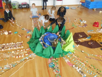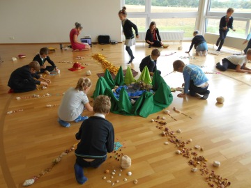 Barunka Sirková nás pozvala na krásnou oázu o pohádce Voda živá, která vypráví o cestě za štěstím. Každý se usadil ke svému kameni a nechal se vtáhnout do příběhu. Děti nejen poslouchaly, ale pohádku také dotvářely. Vyzkoušely si královskou korunu, postavily pevnou studnu a ukryly ji do hustého lesa. Ovšem není jen jedna správná cesta, která ke studni vede. Každý si vytvořil svou vlastní, originální. Barunka připravila mnoho přírodních i umělých materiálů, ze kterých se dá cesta postavit. Děti se pustily do tvoření podle vlastní fantazie a krásně se zabraly do práce. Pracovaly samostatně, ale také si pomáhaly, inspirovaly se navzájem a vytvořily nádherné cestičky, na které byla radost pohledět. Při oáze panovala tvůrčí, pracovní i zamyšlená atmosféra.