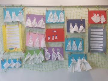 Povídali jsme si mimo jiné o Třech Králích. Následně jsme se je pokusili ztvárnit z hedvábných a barevných papírů.