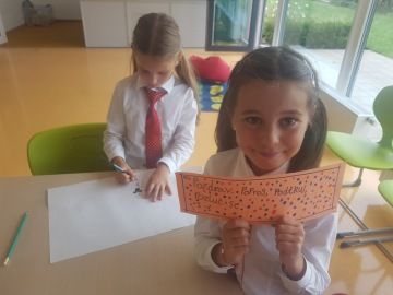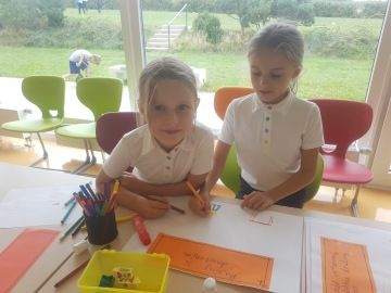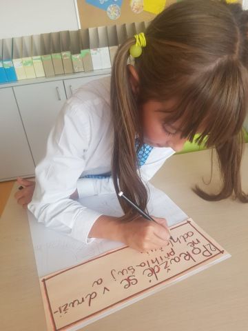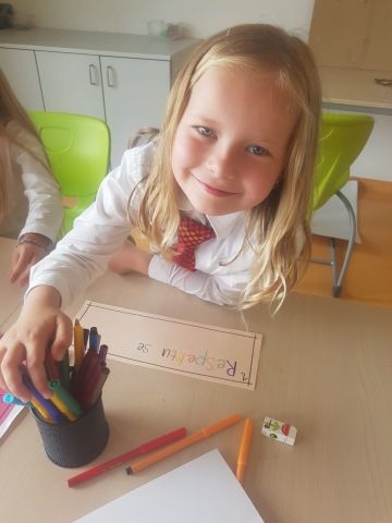 Během prvního týdne jsme trávili spoustu času venku, abychom si co nejvíc užili teplého a slunného počasí. Pustili jsme se také do prvního výtvarného projektu. Společně píšeme a kreslíme družinová pravidla, abychom si je znovu připomněli a naučili je i naše nové kamarády z první třídy.