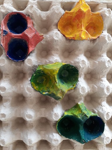 Velikonoce se pomalu blíží a tak jsme se i v družině začali zabývat výtvarnými projekty spojenými s tímto svátkem. Požádali jsme kuchaře ze školní jídelny, zda by nám mohli nasbírat plata a skořápky od vajíček. Během několika dní jsme si mohli odnést skutečně obrovské množství těchto materiálů a pustit se do práce.