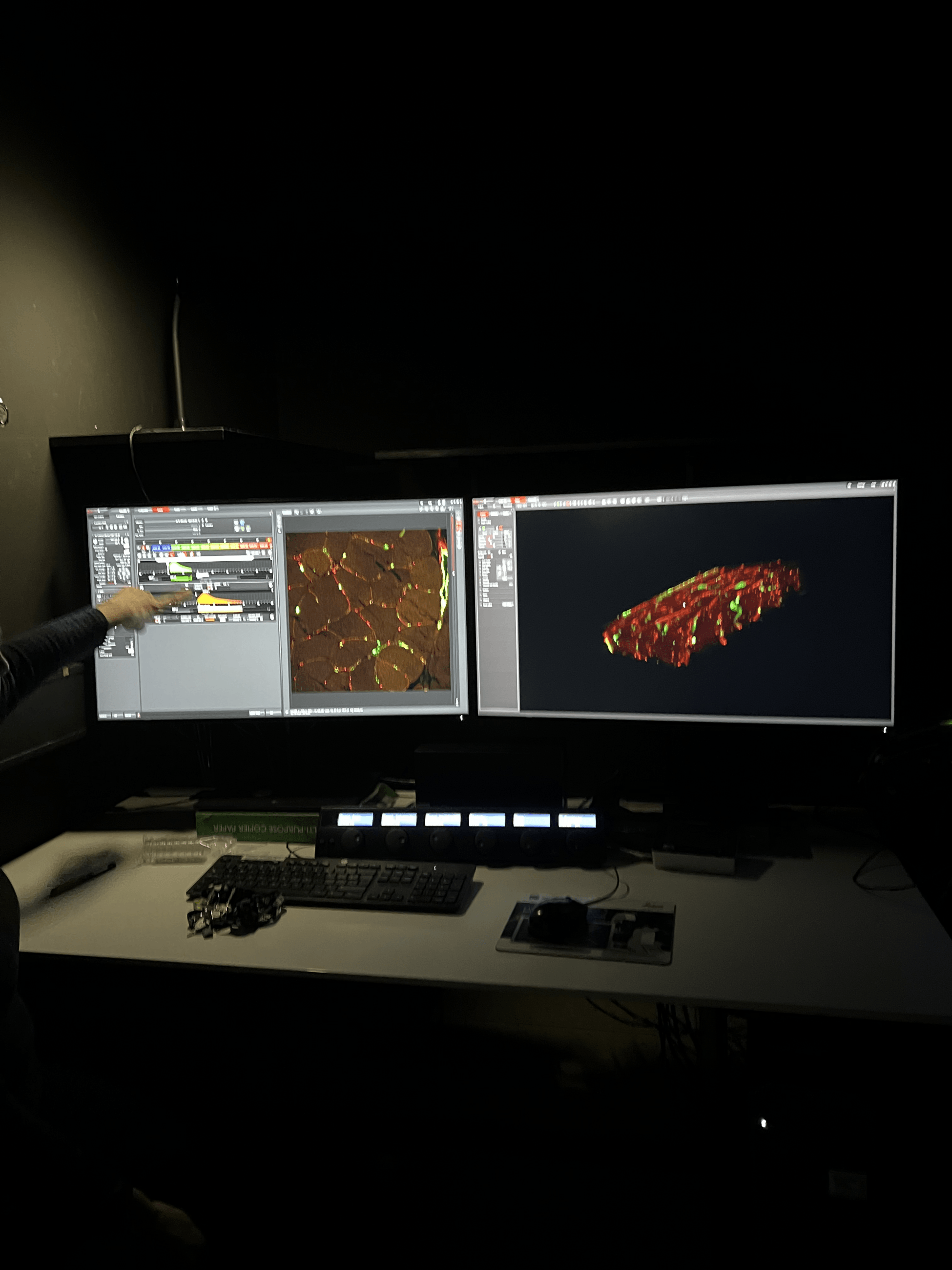 První byla laboratoř zaměřená na metabolomiku – obor, který se věnuje studiu metabolitů a jejich využití například při analýze léčiv či návykových látek. Druhou zastávkou byla laboratoř vývojové kardiologie, kde si studenti prohlédli Langendorffův aparát umožňující sledovat činnost izolovaného srdce za podmínek odpovídajících funkci v těle. Program zakončila laboratoř pokročilé mikroskopie, v níž se studenti seznámili s 3D zobrazovací technikou i praktickými ukázkami využití umělé inteligence ve výzkumu a medicíně.