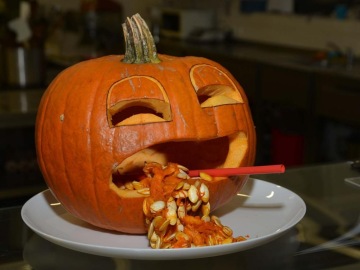 Na kolejích proběhlo tradiční vyřezávání dýní. Zájem byl velký, hala kolejí doslova praskala ve švech, ale každý, kdo se chtěl přidat, si našel své místo, svoji dýni i nářadí k této aktivitě potřebné. Do soutěže o nejlepší dýni se zapojilo rekordních 28 soutěžících a umělci na prvních třech místech byli oceněni sladkou odměnou. Porota neměla rozhodování vůbec jednoduché. Vítězové byli vyhlášeni na večerní Halloweenské diskotéce, jež se odehrála v našem divadle. Zde si mohli studenti pořádně zatančit a předvést svoje nejen strašidelné masky. Nechyběly různé komiksové a filmové postavičky, Jožin z Bažin či pan plukovník z KFC. Protože jsou naši studenti kreativní a soutěživí, porota vybírala také nejhezčí kostýmy, které odměnila rovněž něčím na zub. Všichni si akci dosyta užili a my se těšíme, jaké kreatury uvidíme příští rok. Ty letošní si můžete prohlédnout zde.