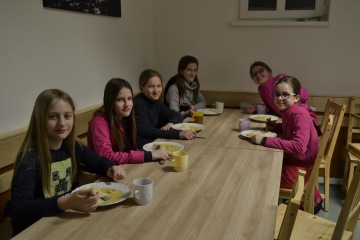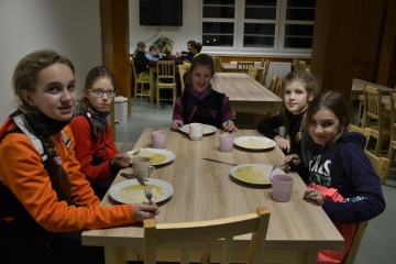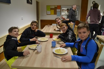Páťáci se opět hlásí ze zasněžených svahů. Je tu krásně a čerstvý vzduch nám dělá dobře na naše mozkové buňky. Nejprve mi dovolte shrnout včerejší příjezd. Po výšlapu k naši nové domovině jsme se zapotili u testíku, chutně se navečeřeli a vydali se na svah.