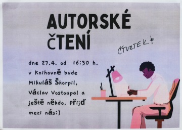 Podobná atmosféra byla na posledním autorském čtení letošního školního roku v režii Mikyho Škorpila, Václava Vostoupala a spol. Redaktoři časopisu STUDENT se po dvou letech úžasné tvorby loučili, jak jinak než básní. Po maturitě se rozletí do světa, a tak visí nad časopisem otazník. Vyhlížíme pokračovatele, který usedne na redaktorskou židli a zasadí se o to, že výjimečný studentský časopis nezanikne.