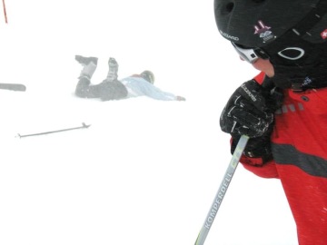 Jasmína Švarcrová (5.B): „Vzhledem k tomu, že se jednalo o sportovní kurz, nelze opomenout i pády a kolize, které k tomu neodmyslitelně patří. Přišli jsme o pár hůlek nebo je určitým způsobem poškodili (pan Klauz je naštěstí silný chlap a všechny narovnal do téměř původního stavu), části helem (někteří spolužáci stále nepochopili, že je zakázáno vyklánět se z oken lanovky nebo cokoliv vyhazovat ven), rozbili pár vázání a otloukli sami sebe i spolužáky (promiň, Jeni). Ale na sjezdovkách nám to samozřejmě slušelo jako vždy. Ve fešných žlutých rozlišovácích jsme byli nepřehlédnutelní a pod hrozbou 500 korun, pokud tento módní kousek ztratíme, jsme je hrdě nosili.