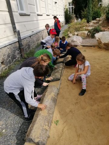 To je samozřejmě jen vtip, kameny jsme v den, kdy jsme navštívili Geologické centrum nejedli. Ale den to byl opravdu parádní. Vyšlo nám skvělé počasí a nám nic nebránilo se vydat za poznáním hornin a minerálů. Paní instruktorka si pro nás připravila skvělé úkoly a za odměnu si mohl každý ,,vyrejžovat´´ pravý český granát.
