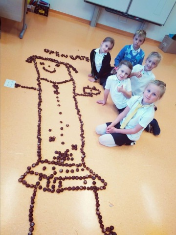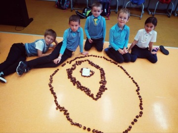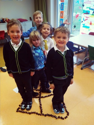 V první třídě jsme využili naši kaštanovou nadílku k počítání a vytváření různých geometrických tvarů. Děti pracovaly společně a vytvořily neuvěřitelné obrazy, kterým ani prostor ve třídě nestačil. Skvělá práce!