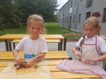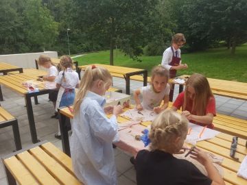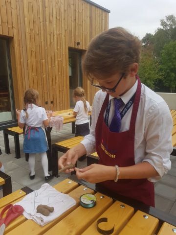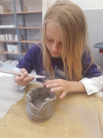 Začali jsme tvorbou ze samotvrdnoucí hlíny v kombinaci s drátky a korálky. Vytvořili jsme závěsné vážky a hned si je odnesli domů. Na další výtvory si již budeme muset počkat, protože budou procházet celým procesem tvorby - sušením, přežahem, glazováním a ostrým výpalem. Vytvořili jsme ozdobné květináče technikou tvorby z válečků. Po vymodelování dna si děti již mohly válečky klást a motat podle své fantazie do spirál či různých ornamentů.