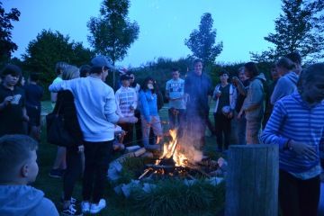 Od neděle to na našich kolejích zase pěkně žije. Týdenní odpolední program byl včera večer patřičně zakončen - samozřejmě společným posezením u ohně. Zároveň jsme jím zahájili nový školní rok na kolejích. První vatra byla v režii zkušených vychovatelů Elen Haspeklové a Michala Hensla. Ti nějakým zázrakem zařídili, že byl mezi všechny deštivé dny vměstnán ten jediný suchý a slunečný, který se nám náramně hodil. Ještě než se vše naplno rozběhlo, proběhlo losování a rozdělení studentů do týmů na sportovní den a následné vymýšlení společného názvu družstva a bojových písní. Asi po deseti minutách přišlo to, na co jsme všichni netrpělivě čekali, Fidlo škrtl zápalkou. Stejně rychle jako oheň se rozhořela i zábava. Opékaly se buřty a hrálo se na kytaru, ale hlavně se všichni dobře bavili při vyprávění zážitků z prázdnin. Noví primáni se začali pomalu začleňovat do kolektivu a bavit se se staršími studenty. Určitě nebudu lhát, když řeknu, že úterní večer se opravdu povedl.