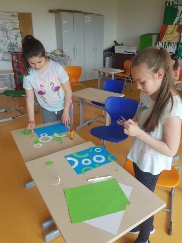 Ukázalo se, že možností je nekonečné množství a kdyby nezazvonilo na konec hodiny, asi by ještě stříhaly a lepily...