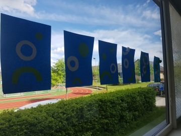 Jedna ze studentek vytvořila řadu kompozic postupného rozkladu loga, jiné děti začaly pracovat i s prostorem, kdy jednotlivé tvary ohýbaly a vrstvily.