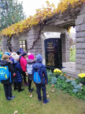 Společně jsme samozřejmě oslavili 100 let od založení republiky a vydali se na hřbitov, kde jsme zapálili svíčku padlým vojákům.