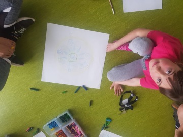 Družinové děti se tento týden pustily do nového výtvarného projektu - do kreslení mandal. Povídali jsme si o tom, že mandaly jsou symbolem jednoty a rovnováhy. Mohou být "mapou"celého vesmíru, ale také našeho vnitřního duševního světa. Neexistují tu žádná pravidla, jak s mandalou pracovat. Děti si volily svou vlastní barevnost i způsob práce a postupně se nechávaly unést do světa své fantazie. Zjišťovaly, jak příjemná je to relaxace a jak odlišně esteticky jednotlivé mandaly nakonec působí.