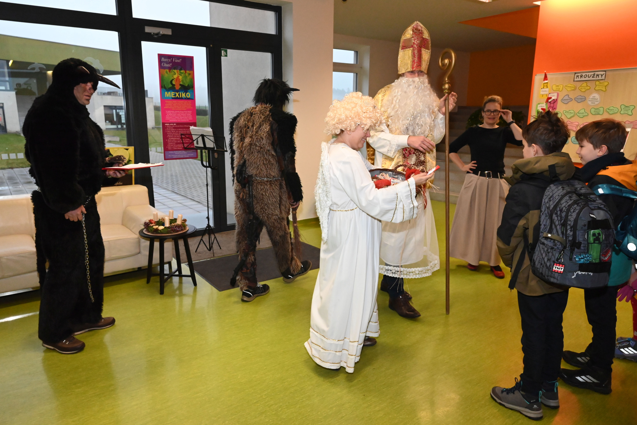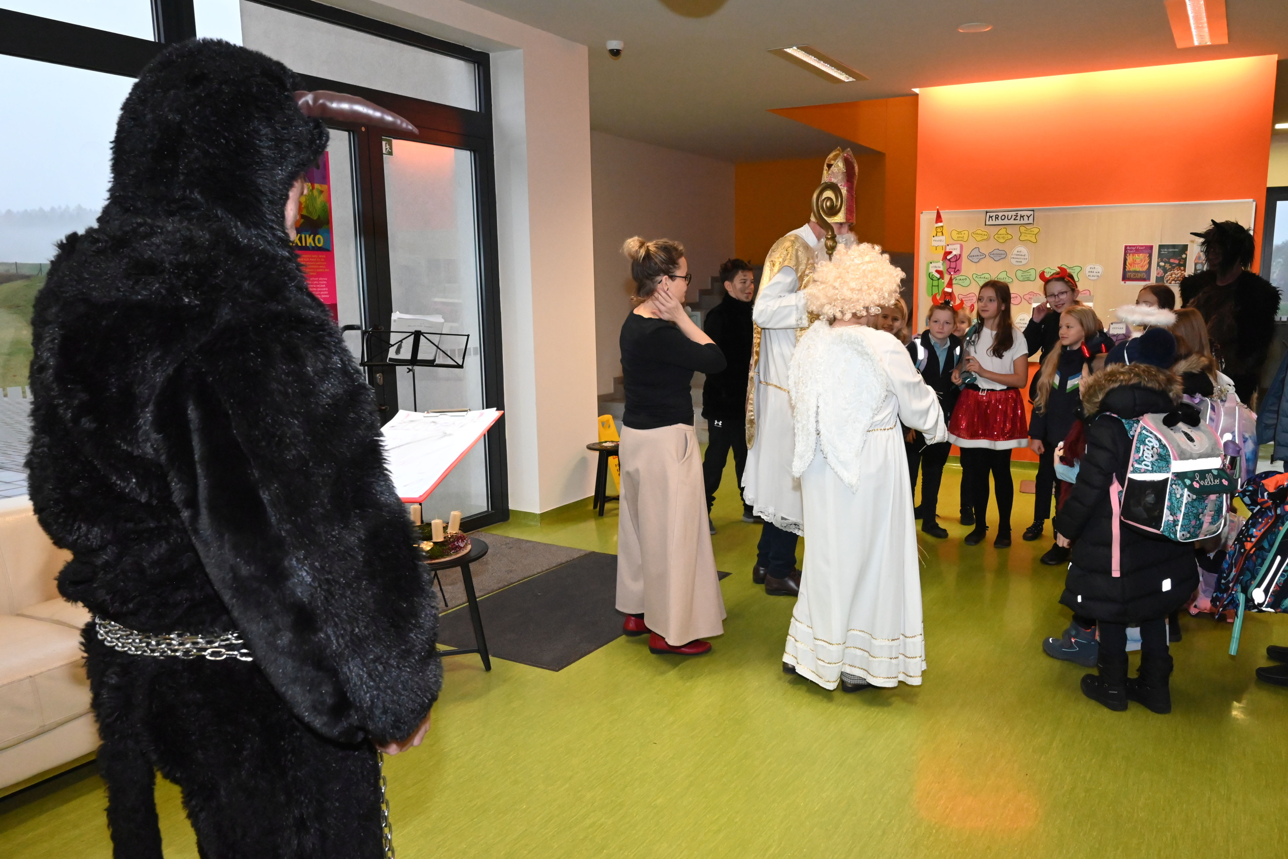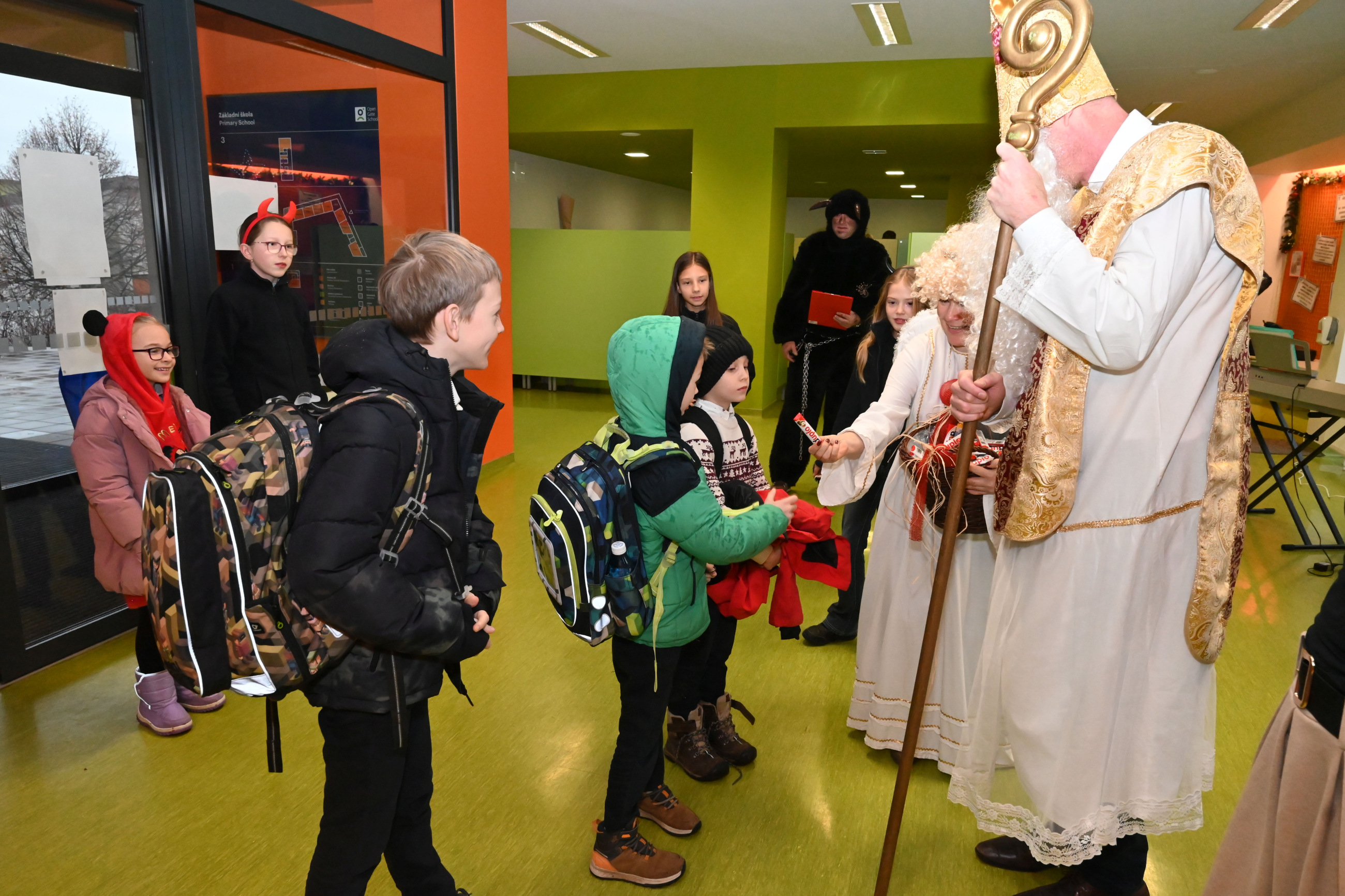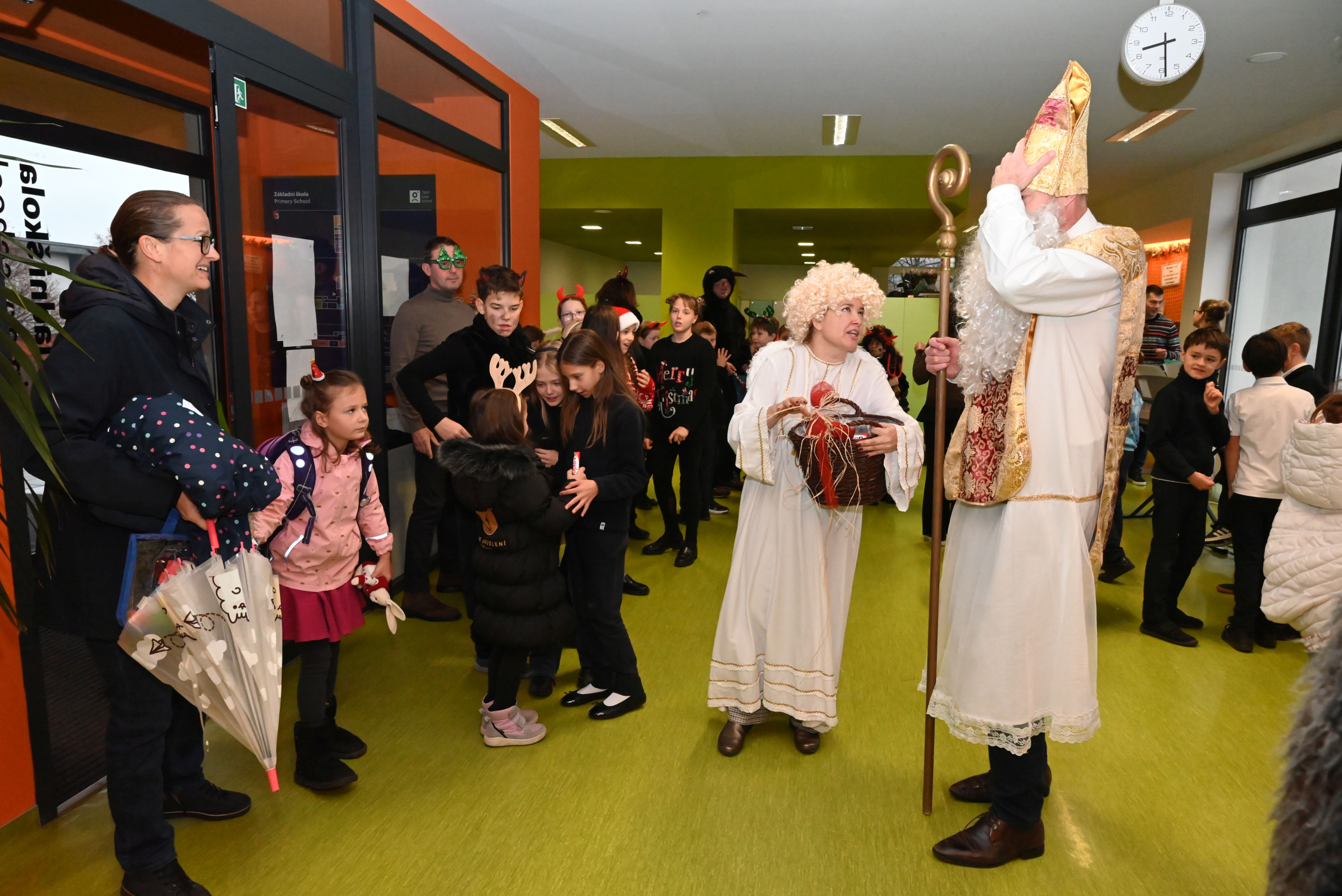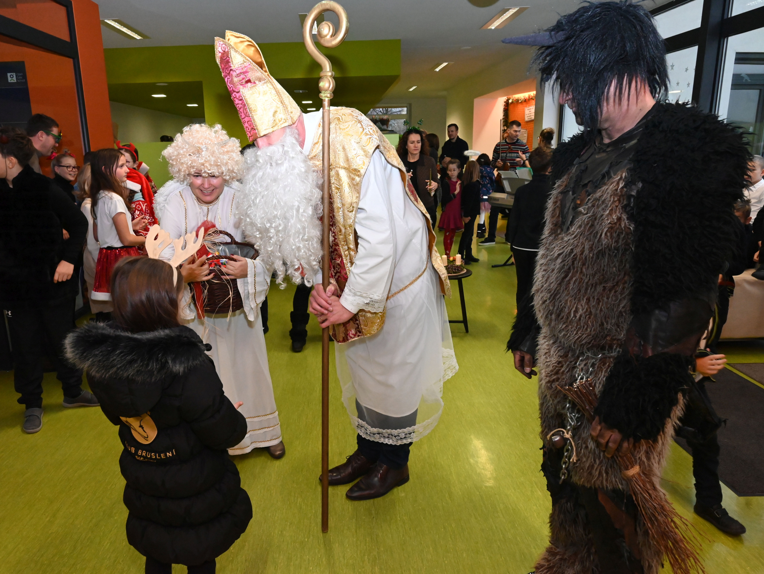 Mikuláš i jeho doprovod se k nám připojili ke společné adventní oáze ve vstupní hale ZŠ, kde jsme společně zpívali koledy a četli tak trošku jiný příběh o Mikulášovi.