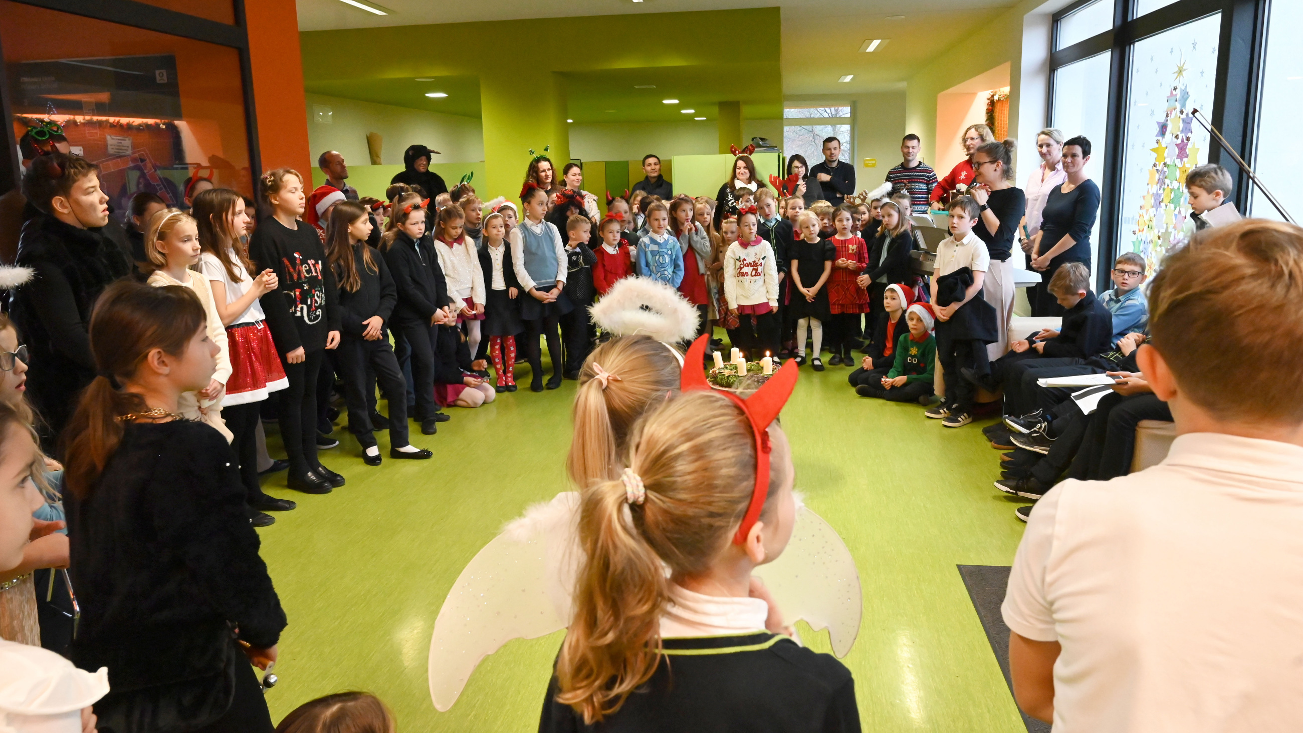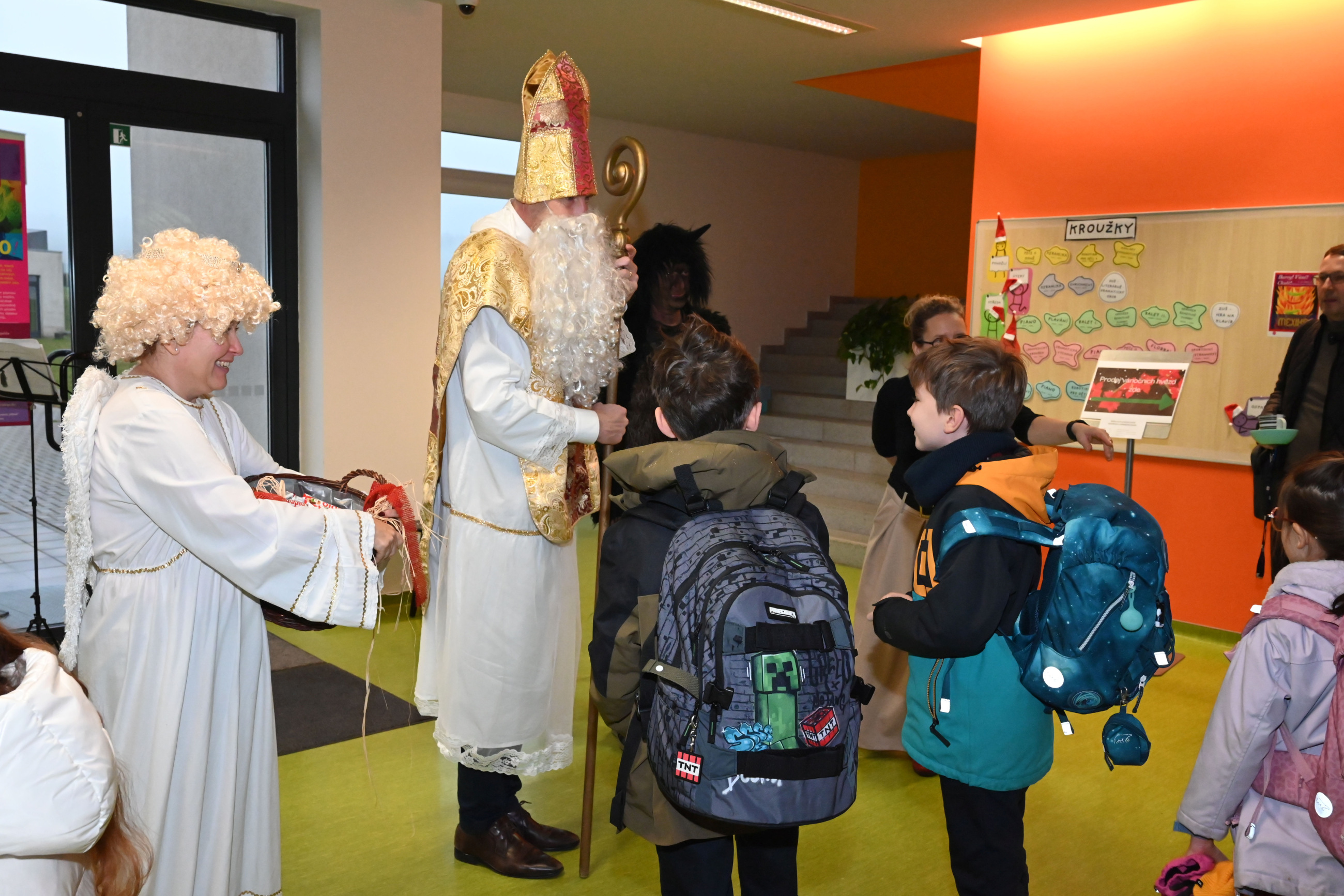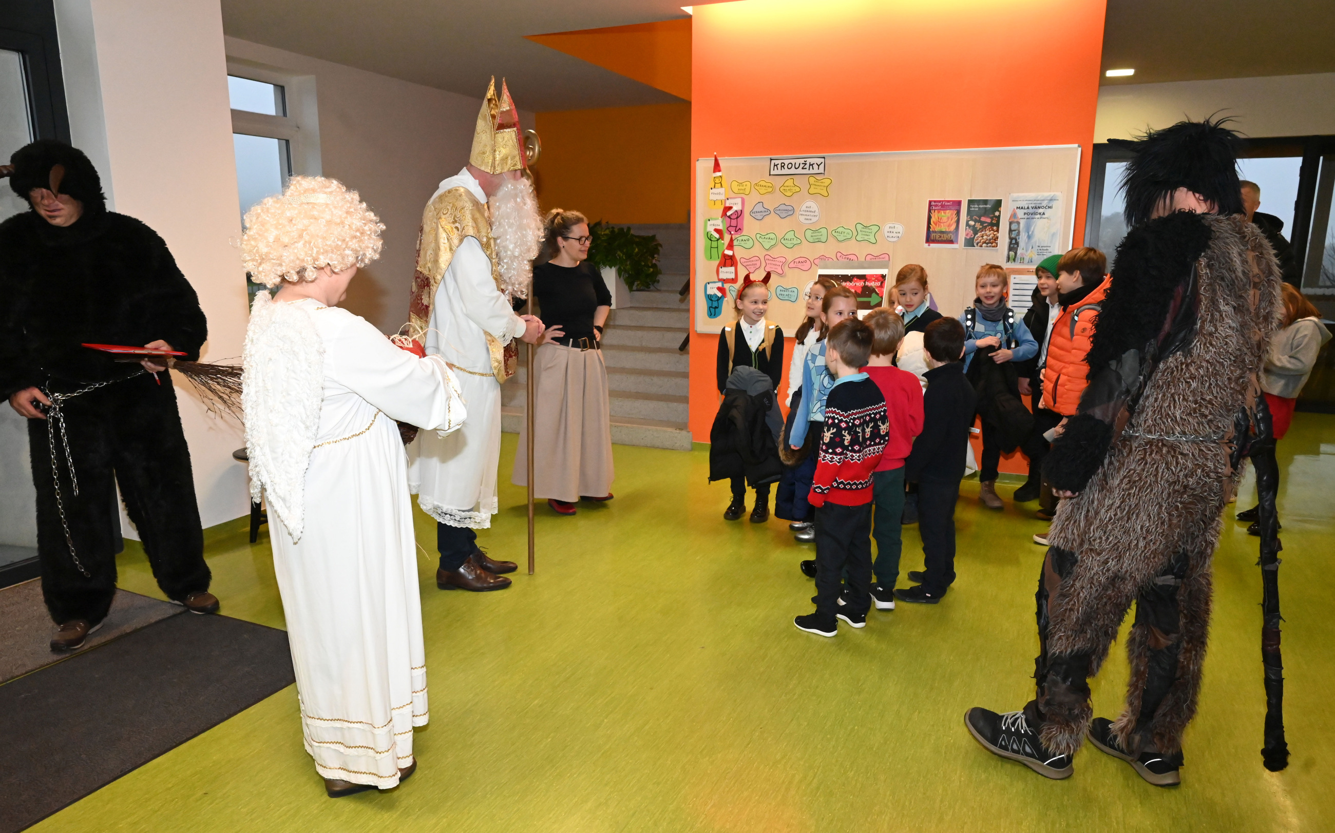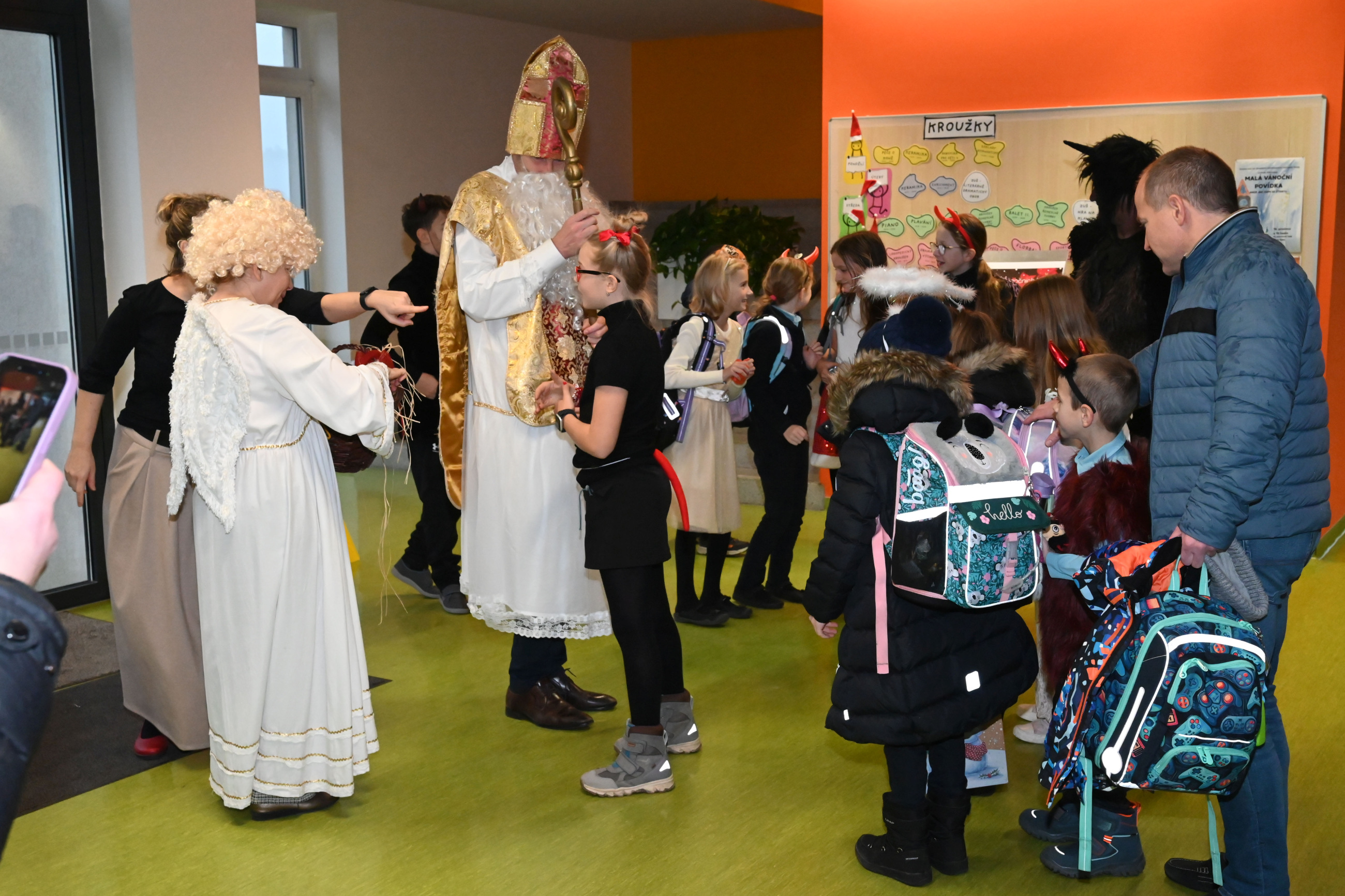 Mikuláš i jeho doprovod se k nám připojili ke společné adventní oáze ve vstupní hale ZŠ, kde jsme společně zpívali koledy a četli tak trošku jiný příběh o Mikulášovi.