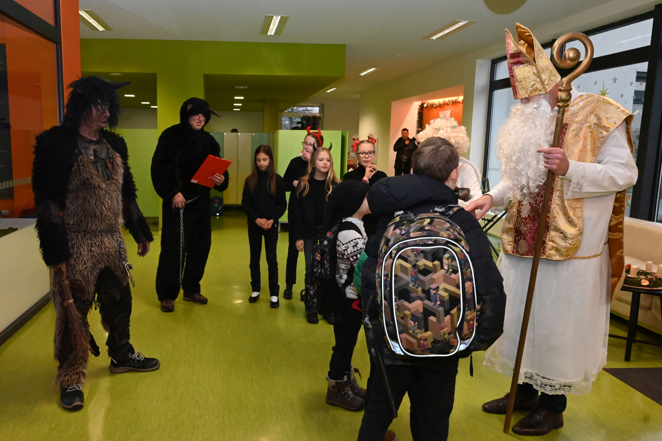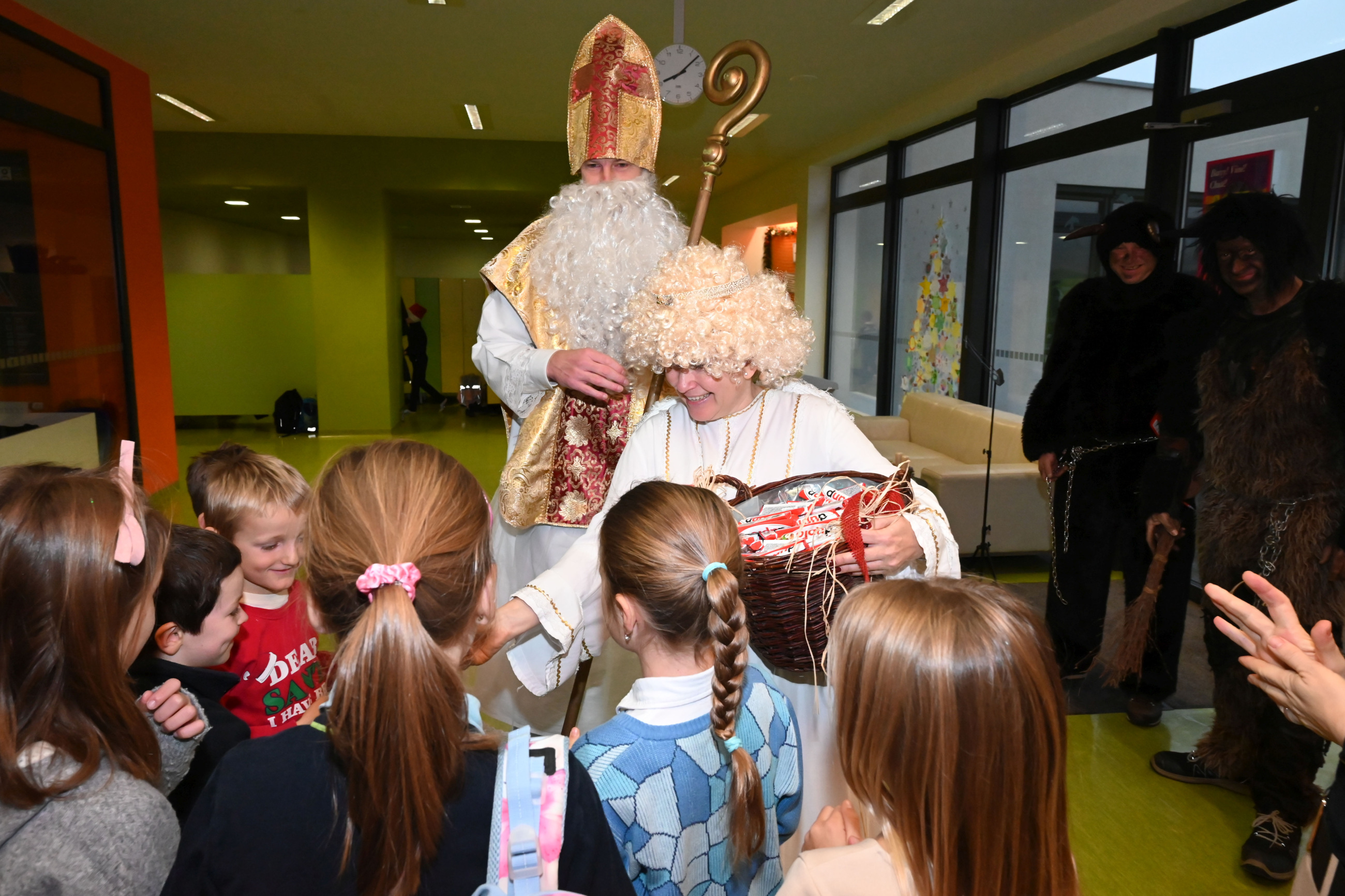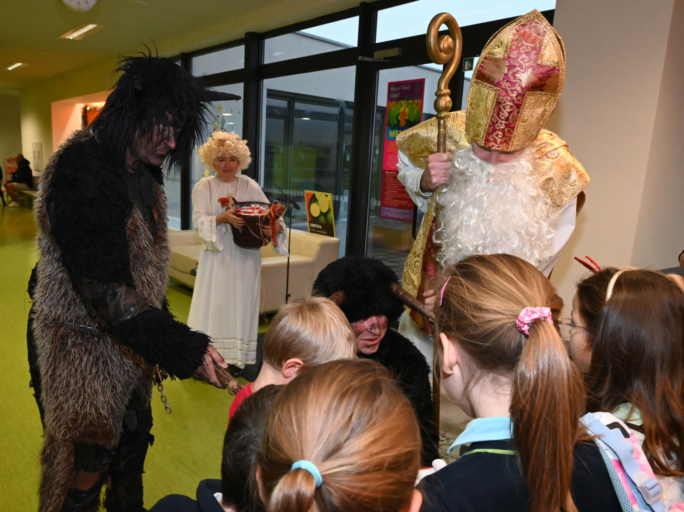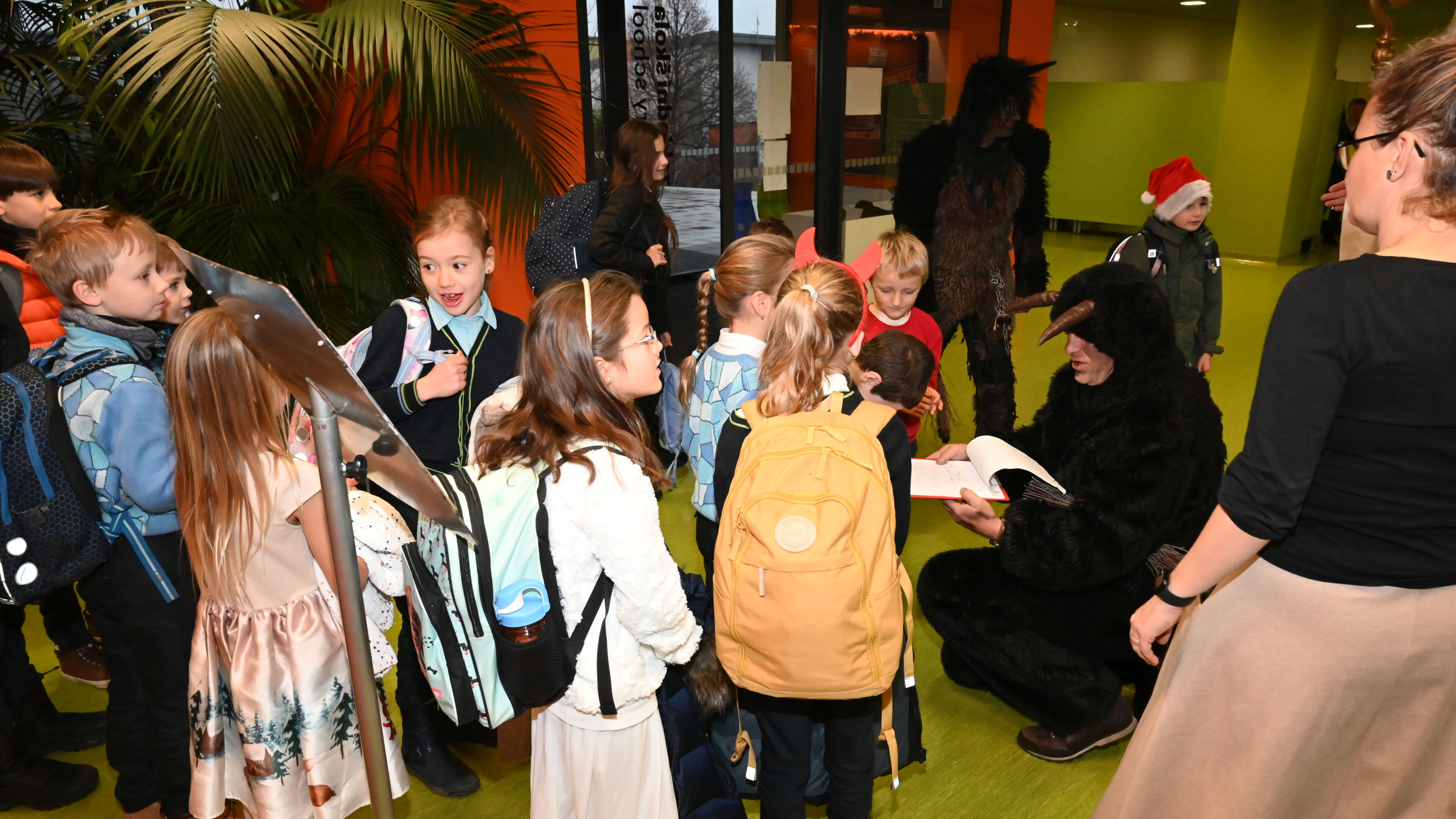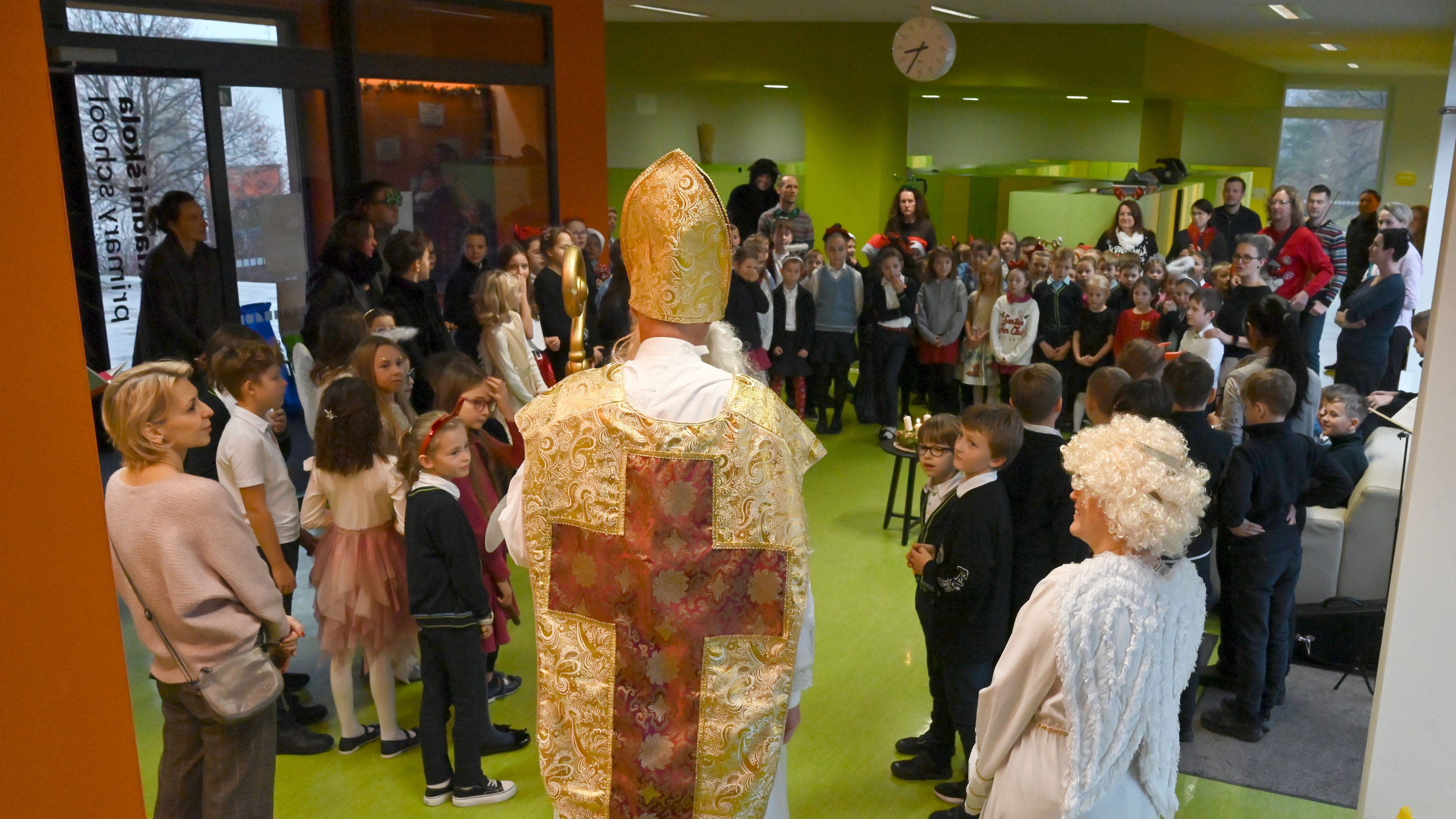 Mikuláš i jeho doprovod se k nám připojili ke společné adventní oáze ve vstupní hale ZŠ, kde jsme společně zpívali koledy a četli tak trošku jiný příběh o Mikulášovi.