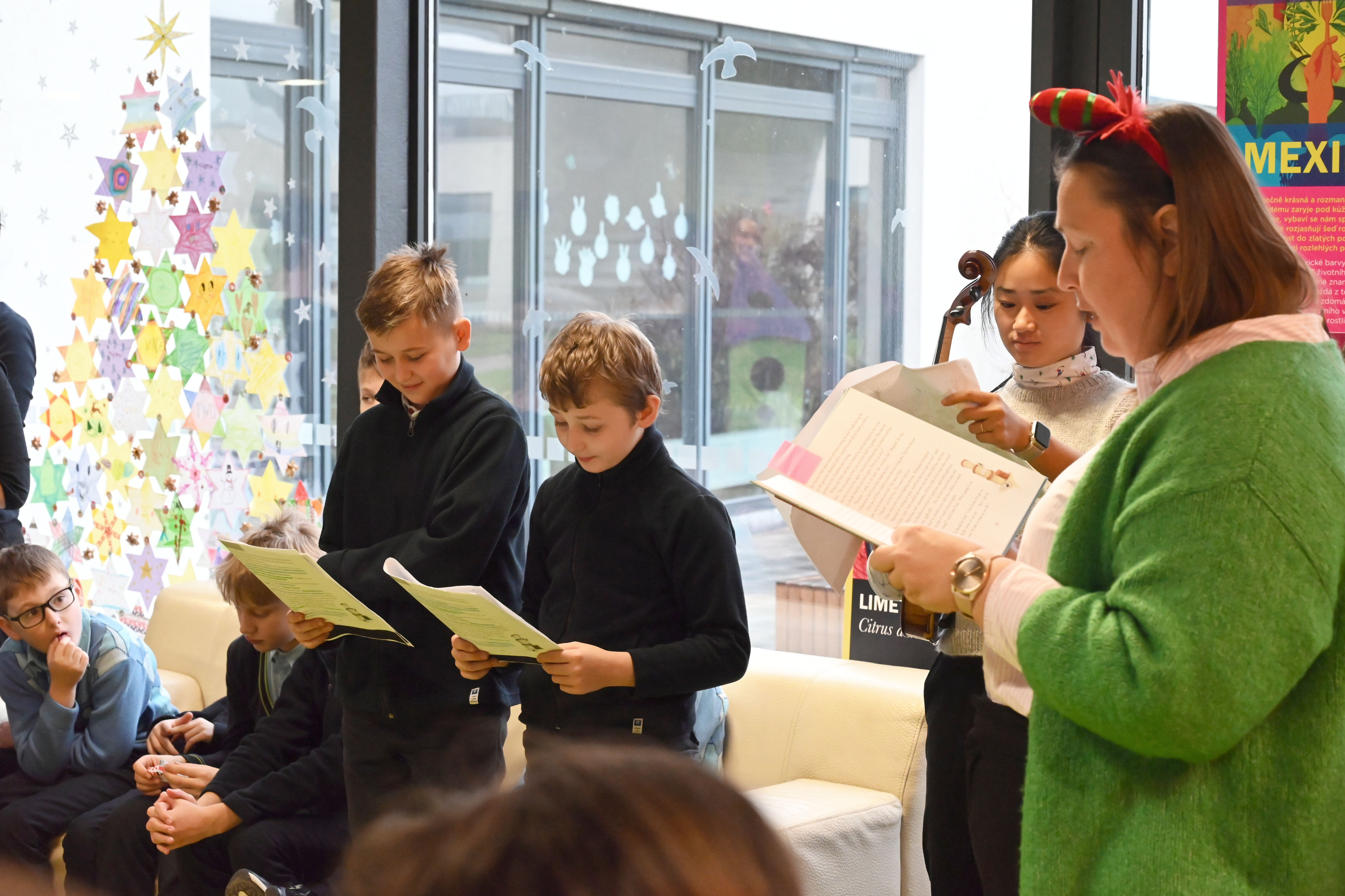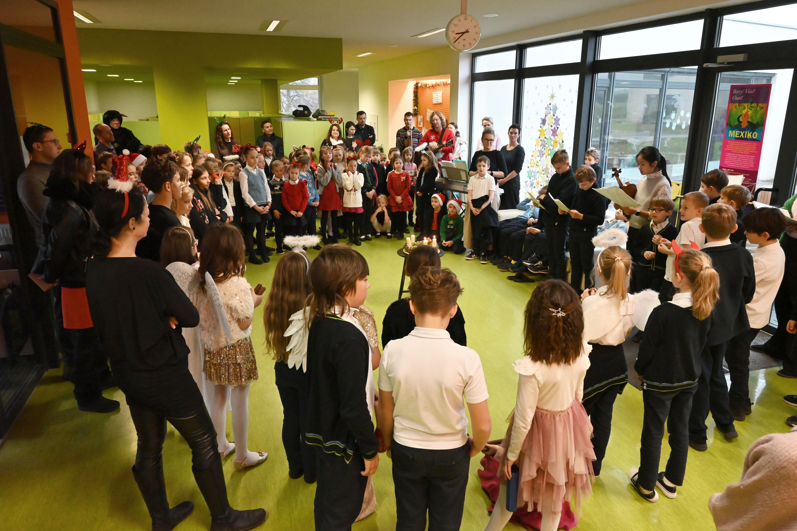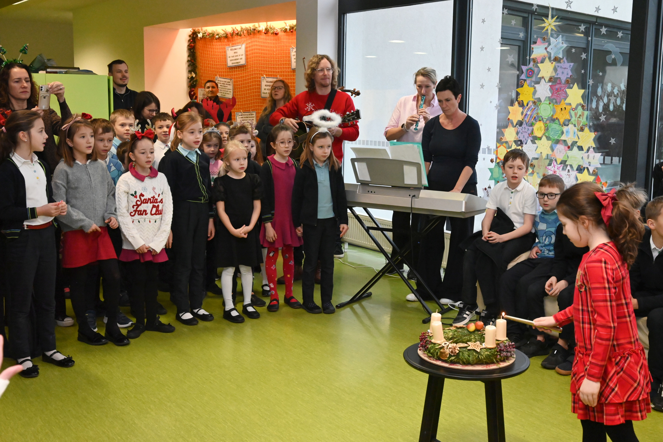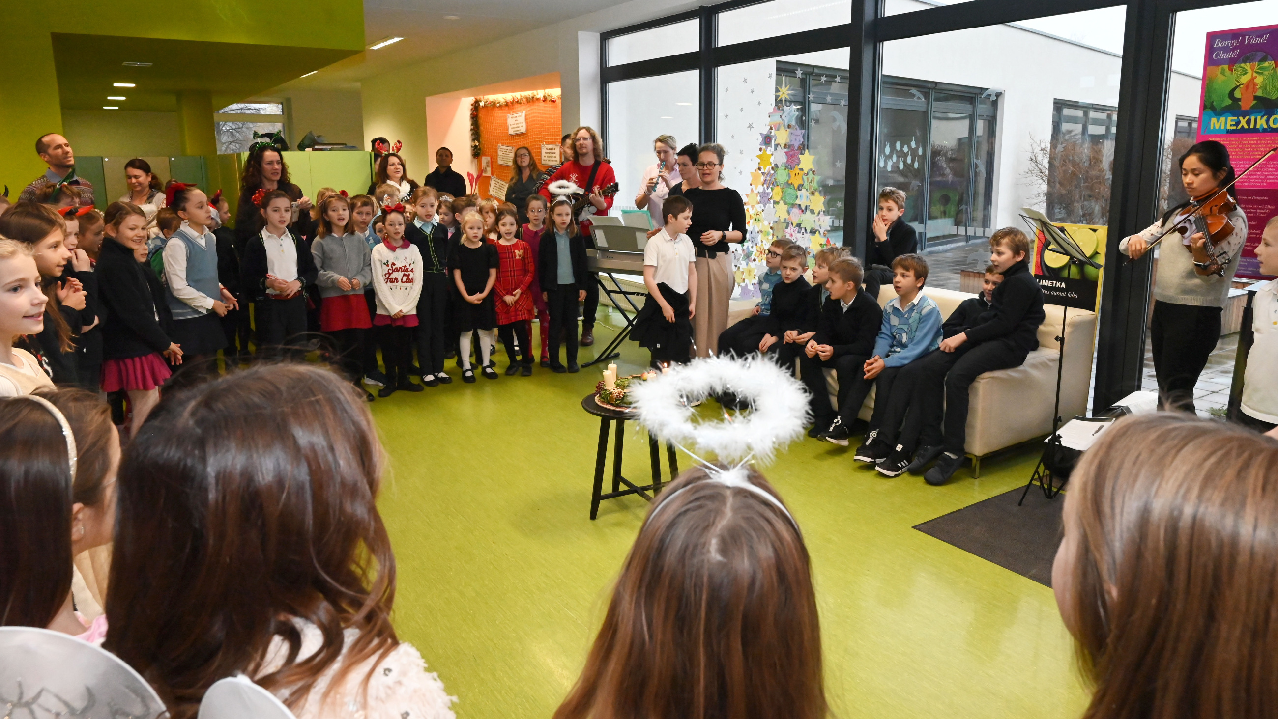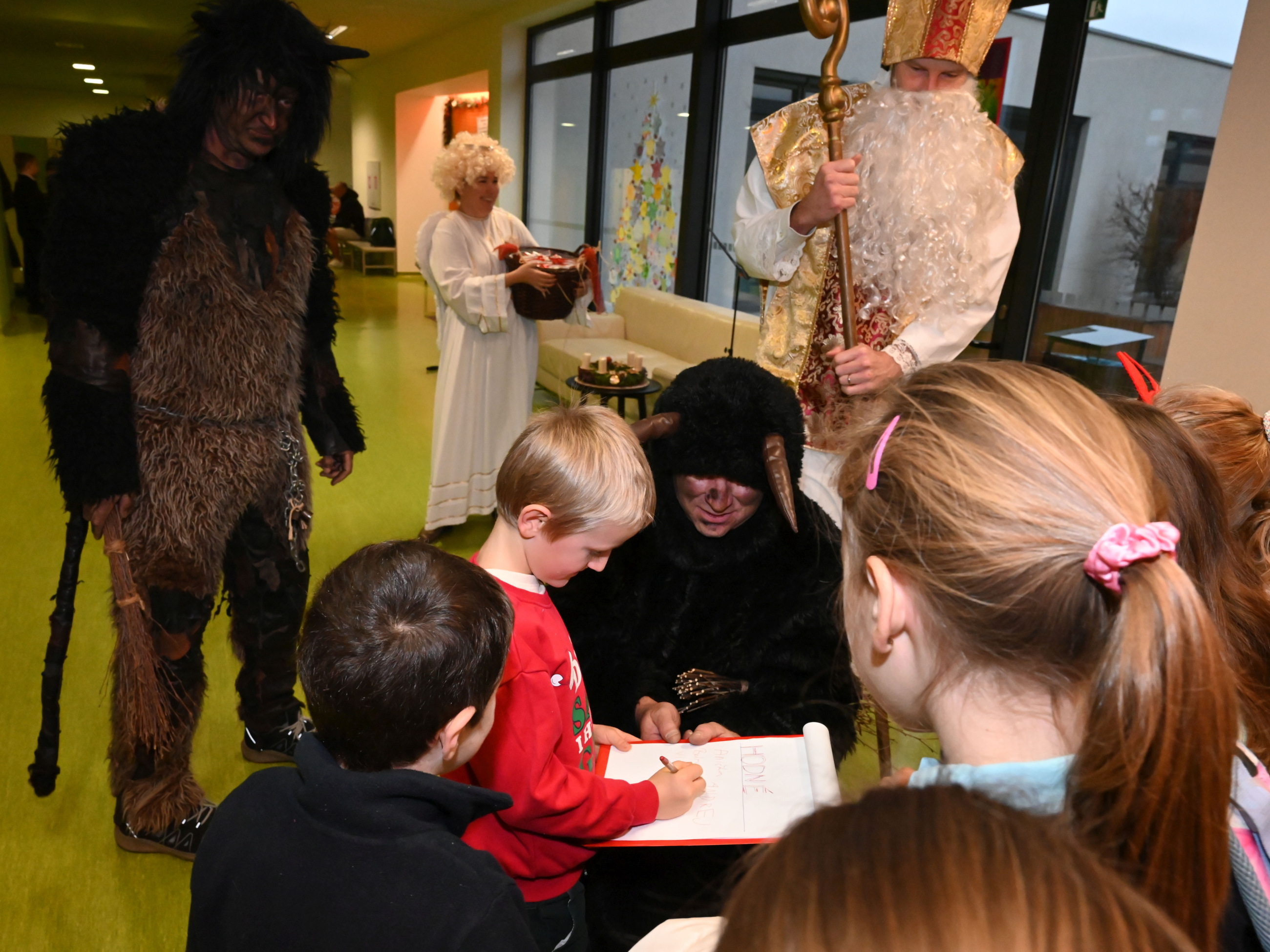 Mikuláš i jeho doprovod se k nám připojili ke společné adventní oáze ve vstupní hale ZŠ, kde jsme společně zpívali koledy a četli tak trošku jiný příběh o Mikulášovi.