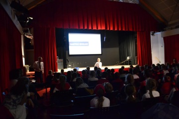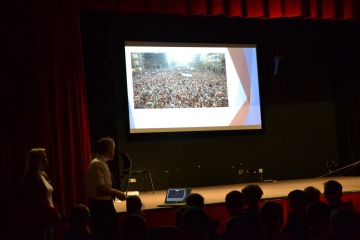 Dnes jsme se sešli v divadle školy na společné slavnostní assembly, při které jsme si připomněli události spojené s oslavou výročí třiceti let od sametové revoluce a že díky ní máme možnost svobodně vyjadřovat své názory, dělat, co nás baví a cestovat po světě.