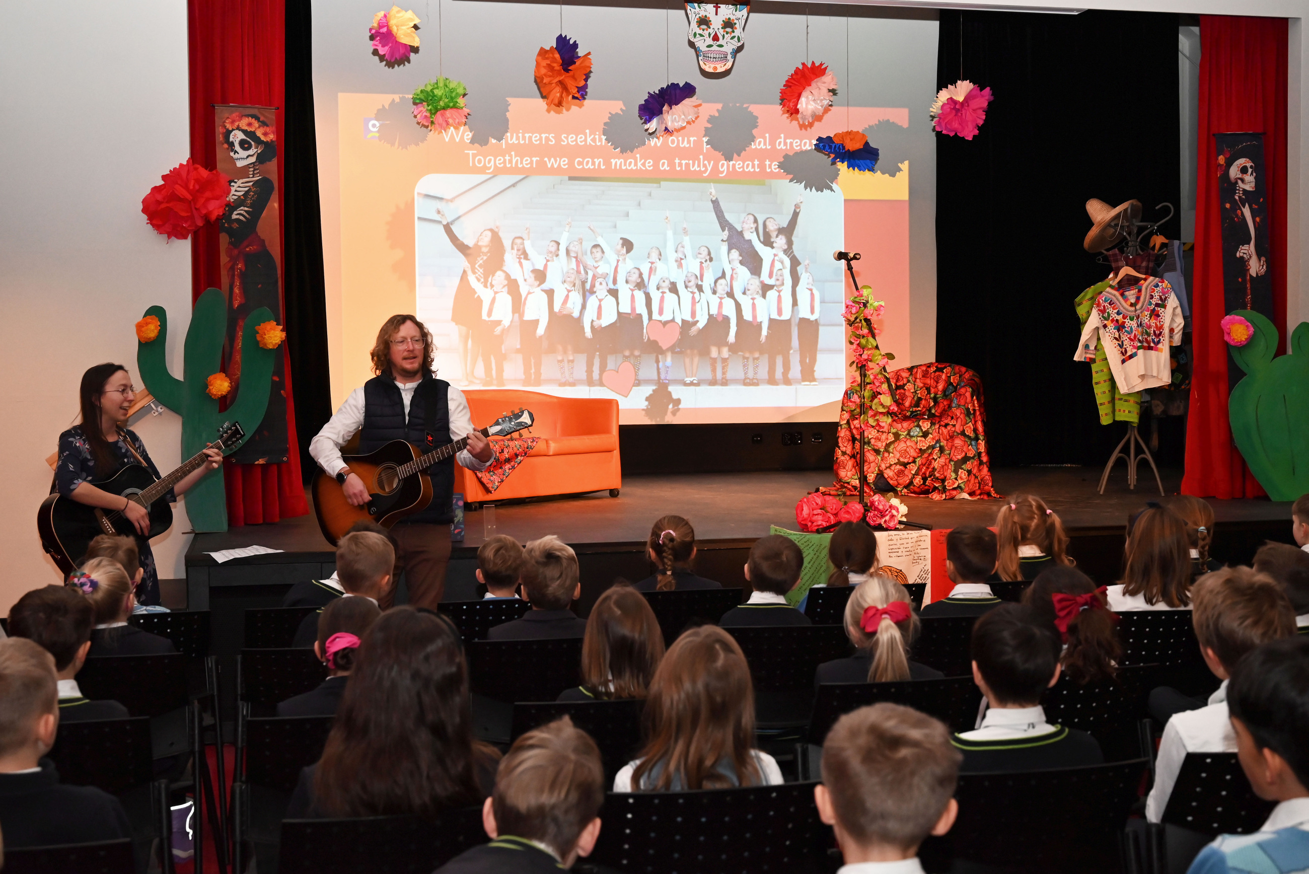 Morning oasis assembly na základní škole v režii žáků páté třídy