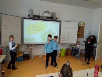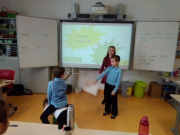 This week we did our Phonics class a little bit differently than normal. We decided to add a little bit of theatre to our class room and let the students act out all of the words. In groups of 4 students, they were given 2 words per group with a picture to go with the word. Each group was able to come up with a small skit/play to represent the words. The other groups tried to guess what word they were acting out. The students seemed to really enjoy the activity. It allowed them to be more active, creative and free thinking in the classroom.