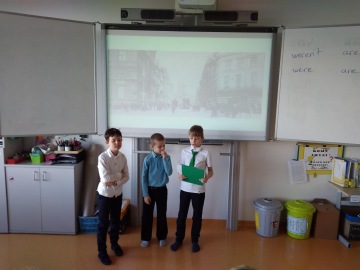 We’ve been working on speaking the Past Tense with “There was” and “There were” with Class 3 this week. For a bit of extra speaking practice we looked at some photos from the early 20th century and made some “Then and Now” comparisons. The students enjoyed seeing the old photos and thinking about how different things could have been if they were born 100 years ago. Here are a few photos of some of the students presenting their photos and findings.