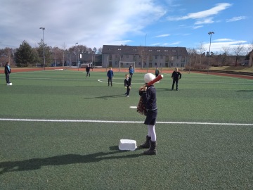 Class 4 had a tough week with lots of work taking the KET mock exams, as well as a Spelling Test. It was very nerve-racking and exhausting for them, so I promised we would take it easy on Friday. Since the weather was nice, we went outside to play a game of Rounders. This is a game they played last year with their former teacher and head of the English department, Luke, and they have loved playing it ever since. I played baseball when I was a child so I knew the concept, but there were plenty of rules that the students filled me in on. It was a nice day out playing Rounders in the sun (and wind)!