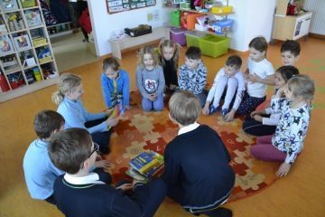Ve čtvrtek 14. 3. navštívili páťáci Benickou školku a pro tamější děti si připravili bohatý program. Zde jsou ohlasy některých dětí, ze kterých je patrné, že si společně strávený čas užili.