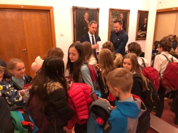 V pátek 22. 11. se páťáci vydali do Prahy na Mariánská náměstí do sídla magistrátu hlavního města Prahy. Tam se setkali s primátorem Zdeňkem Hřibem, který je provedl zasedacími místnostmi a vysvětlil jim fungování celého magistrátu a systém zabezpečení chodu města. V následné prohlídce primátorské rezidence se mohly děti seznámit s reprezentativními prostory radnice. Pro všechny to byl nevšední zážitek a několik páťáků se nechalo slyšet, že by se jim funkce primátora hlavního města zamlouvala. Tak uvidíme..
