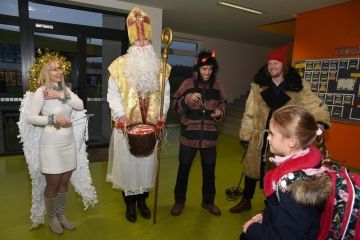 V posledním odstavečku se vrátím k pondělí a výjimečně se bude týkat naší základní školy. Zatímco studentům gymnázia nadělovali pamlsky čerti, andělé a Mikuláš pod taktovkou studentské rady, jejich mladší spolužáci měli čerty, Mikuláše a anděly o poznání zkušenější (prohlédnout si je můžete na přiložené fotce). Pro mě osobně to byla nová a velmi příjemná zkušenost. Práce se studenty našeho osmiletého gymnázia je zajímavá, ale někdy je diskutování s nimi prostě náročné. Skoro jsem při práci s nimi zapomněl, že existují děti menší, jejichž bezprostřednost a upřímnost je zkrátka kouzelná.