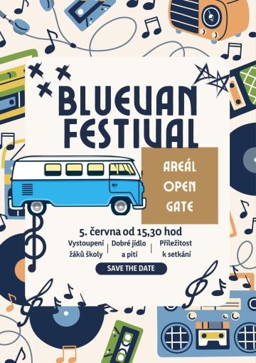 protože se konec roku nezadržitelně blíží, za dveřmi je i náš tradiční školní festival BlueVan 2025 – bude to opět jedinečné odpoledne a večer plný hudby, pohybu a příležitost k setkání pod širým nebem. Začátek akce bude v 15,30 hodin, děti ze základní školy budou mít dva bloky – od cca 15,45 a od cca 18,00 hodin. Všechny děti se po skončení výuky přesunout před hlavní budovu gymnázia, kde se celá akce bude konat. Pokud se děti nemohou/nebudou BlueVanu účastnit, informujte o tom, prosím, třídní učitele a Markétu Lepičovou, děkujeme.