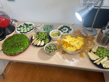 dnešní souhrn informací začnu zprávou z kolejí, kde v pondělí proběhl St. Patrick‘s Day. A proč zavítal tento irský svátek na Open Gate? Studentskou mluvou: Protože Patrik Zoul. Pro všechny v našem kampusu to však bylo příjemné zpestření; každý, kdo v pondělí odpoledne dorazil na koleje v zeleném, si mohl nabídnout cokoli z připraveného zeleného občerstvení: mechový dort (upečený Patrikem), Oreo sušenky v zelené čokoládě, kukuřičné nachos s guacamole, zelené ovoce, oříšky s wasabi nebo mentolové bonbony... Kolegyně z oddělení biologie navíc v laboratoři nabízely vypěstovanou ukázku organismu Penicillium chrysogenum, tu však Patrik s díky odmítl.