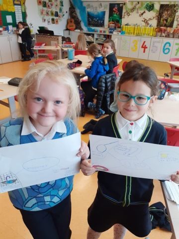 This week Class 1 met a new classmate! Botley the Robot! We used all our new words ( forward, backward, left, and right) to move Botley to his goal. We also matched some of our coded Botley messages into shapes. This week we also practiced our speaking by telling our classmates the colours of different toys in our toy box. Finally, we closed out our week with the story Shark in the Park and learned the word for telescope.