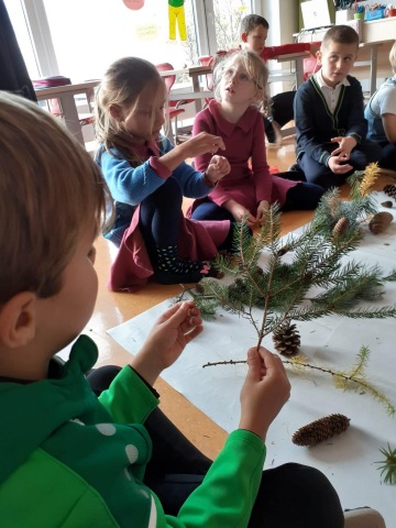 Hned zkraje týdne nás potěšila návštěva Ondry Brože v naší třídě. Vymysleli jsme spoustu zajímavých otázek a velmi pozorně naslouchali odpovědím návštěvníků. Své badatelské úsilí jsme zaměřili na jehličnaté stromy, jejich větvičky a šišky. Čím se od sebe různé stromy liší? My už to víme. V jaké podobě k nám přijel Martin na bílém koni? Odpověď naleznete na nástěnce vedle třídy.
