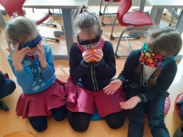 Tento týden si prvňáci vyzkoušeli, jak používají své smysly. Rozeznávali tvary, vůně a chutě prostřednictvím různých druhů ovoce, hmatem rozlišovali předměty a jejich tvary a zrakem rozpoznávali optické klamy. V knihovně si půjčili nové knihy, četli a vybírali jsme vtipné básničky na recitační soutěž a vyzkoušeli si, jak správně nahlas a zřetelně recitovat. Už se moc těšíme, až se příští týden předvedeme ostatním dětem i vyučujícím.