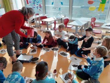 Tento týden jsme žili v básních. Proběhlo u nás třídní kolo recitační soutěže a jeden krásný přednes střídal další. Přečetli jsme spoustu krásných příběhů a už víme jaké chování je bezpečné a jaké může vést k nejrůznějším úrazům. Ve středu jsme si s Bárou z poradenského centra povídali o tom, co je to popeleční středa. Přemýšleli jsme, co mohlo shořet, aby z toho vznikl popel. Zlatá hvězdička nám symbolizovala, že i z popela může vzniknout nový život. Děti si nakreslily do popela to, s čím se musely rozloučit. V pátek jsme si "vyrobili" zubní kaz a budeme zjišťovat, jak se ho zase zbavit.
