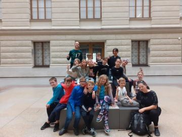 On Wednesday our Class 3 students had a special adventure into the big, historic city of Prague from our humble Babice home. What was supposed to be walking tour of beautiful castles and ancient squares quickly went awry when Mother Nature had other plans- calling in the clouds, full of precipitation, letting loose a downpour of rain as we planned our day. Luckily another, more weather proof itinerary was swiftly forged. The rain let up for a brief period, allowing us to hit the playground near the main train station in Prague before venturing to Wenceslas Square. At the top of the square we entered the historic and recently renovated National Museum to check out their stunning Evolution exhibit. We saw all sorts of animal life, dating back to our earliest ancestors, and watched them morph into what eventually became us- the homo sapian. It was a really cool exhibit and I really think the kids enjoyed it. There is plenty more to go back and learn, so maybe the students will be begging their families to take them back on the weekends to keep building their knowledge of how we have become what we are.