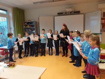 This week we worked hard on our Christmas concert performance. As a class we choreographed our dance and worked on our English-speaking part. We also learned how to conduct and interview and even chose our own spelling words for our next spelling test. In art we “sleighed” it as we created our very own team of Christmas reindeers!