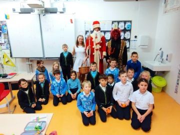 Můžete třikrát hádat, kdo byl tento týden nejen ve třetí třídě v hlavní roli. Ano, uhodli jste to hned napoprvé! Kdo jiný než svatý Mikuláš, patron všech dětí, který se u nás společně s chlupatými čerty a půvabným andělem zjevil nejprve ve školním atriu a na závěr dne zavítal i do naší třídy, kde četl z knihy hříchů. Bylo to věru dlouhé čtení, ale jeho rohatý společník nakonec usoudil, že není třeba zatím nikoho trestat kotlem pekelným. Že prý až napřesrok... Společně se třeťáky jsme si pak o Mikulášově životě četli v ranních oázách a také byl součástí našeho výtvarničení. Kromě toho jsme pod vedením paní Tiché vyrobili nádherné vánoční stromečky z těstovin. Dále jsme psali a četli příběhy z vyjmenovaných slov po B, věnovali se písemným početním operacím a v předmětu Člověk a jeho svět jsme tvořili plakáty o planetách sluneční soustavy. Na závěr týdne jsme se také vrhli na nacvičování naší třídní besídky.