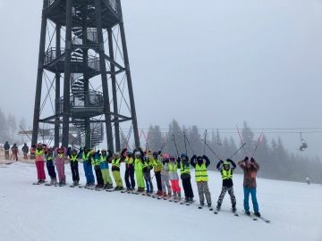 Páťáci se hned v pondělí ráno přesunuli na strmé svahy Krkonoš. Užili si týden plný radovánek ve sněhu i nemálo učení. Tradičně se vydali i na celodenní lyžařský výlet spojený s obědem na Lyžařské boudě. Večery jsme trávili seznamováním, hraním deskových her, rozborem problematických úloh, tancem a tvorbou autorských pohádek, kdy námětem byla pohádka O Červené karkulce. Seznámili jsme se i se základy animace, kterou jsme si vyzkoušeli v praxi. Vzniklo hned několik krátkých filmů, v nichž se v hlavní roli objevily boty, plyšáci či pomeranče.